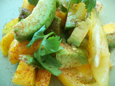 – In a bowl, combine all the fruit and veggies, including the cilantro